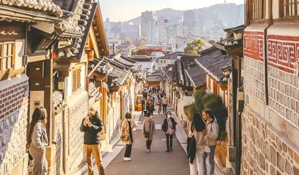 - Bukchon Hanok Village is a traditional neighborhood in Seoul with over 900 hanok houses from the Joseon Dynasty. The village features narrow alleys, wooden beams, tiled roofs, and preserves Korea’s architectural heritage in a modern city.