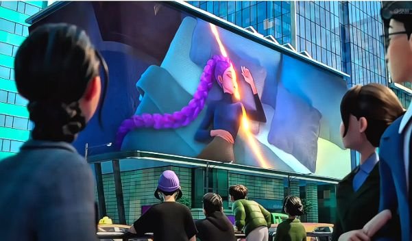 - It appears on the billboard announcing “Golden”, and also appears when the “Saja Boys” take people to Namsan.