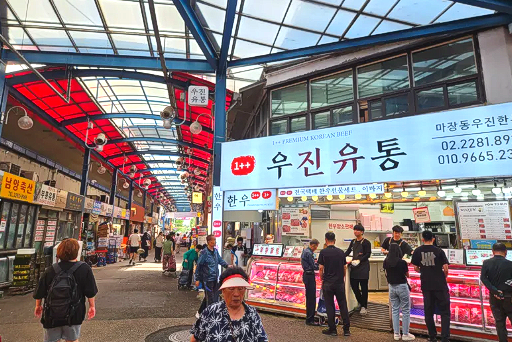 Korean Hanwoo beef is often underrated compared to Japanese Wagyu beef, but its flavor surpasses that of Wagyu. In Korea, Hanwoo beef is considered a delicacy reserved for distinguished guests. Majang-dong has a livestock market selling slaughtered beef at affordable prices. The market also boasts numerous Hanwoo beef restaurants. I recommend rib eye(꽃등심),sirloin(등심), Chuck Flap Tail(채끝살).