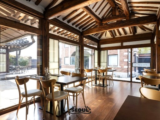 Tucked away in the alleys of Bukchon Hanok Village, Hwikyumjae is a hanok café where Seoul’s living traditions come to life. The building, originally built as a scholar’s residence, has been carefully preserved so visitors can enjoy the beauty of exposed wooden beams, sliding doors, and a small inner courtyard that still feels like someone’s home. Sitting inside, you get a sense of how daily life once unfolded in a Korean household centuries ago.